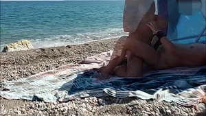 Geile Spanner filmen nacktes Pärchen beim Ficken am öffentlichen Strand