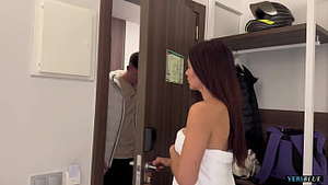 Rohes Ficken mit meiner HEISSEN, NATÜRLICHEN Latina-Stieftochter, während ihre Mutter im Hotelbad duscht - Gaby Ortega -