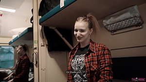Mitfahrgeile Schlampe bläst Zugfahrer und schluckt Sperma