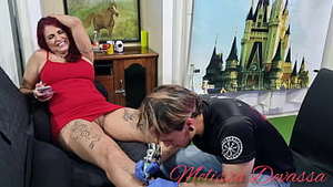 Melissa lässt sich ohne Höschen tätowieren - wird sie die Tattoo-Session genießen?