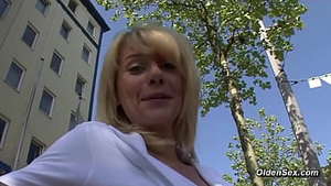 Deutsche blonde MILF wird im Freien mit Sahne gefüllt