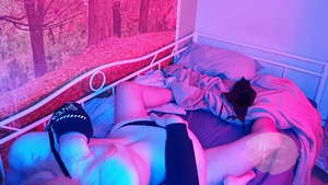 ein junge in Freundinnen clothes blasen und reiten einem penis