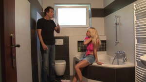 Notgeile Blondine ueberredet Ihren freund fuer einen dreier