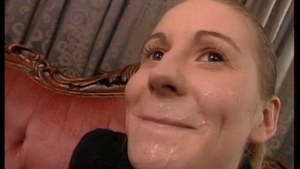 GroBe Titten mädel Schlampe gibt erstaunliche lutscht Dreier Sperma im Gesicht