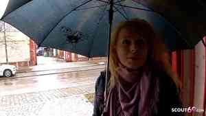verdorbene Deutsche Blondchen Peppige Frau angesprochen auf in Öffentlichkeit vor dem Strasse flirt