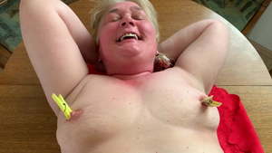 Blasluder mit Klammern an Titten