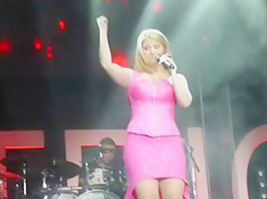 Beatrice egli pink mini Outfit slip zeigen Fötzchen an Live auf der Bühne oops
