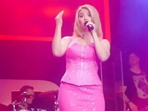 Beatrice egli pink mini Outfit slip zeigen Muschi vor Live auf der Bühne oops