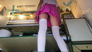 Geile Schlampe im Minirock putzt ihren Arbeitsplatz - Upskirt POV