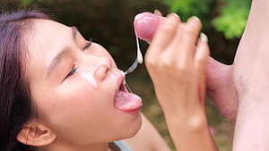 Kleine asiatische Schlampe lutscht dicken asiatischen Schwanz
