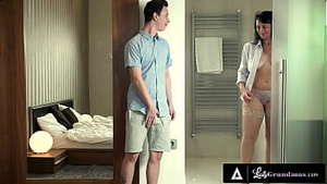 Geile Omas - Die heiße MILF-Putzfrau in Strümpfen erfüllt einem Mann seinen Fick-Fantasie!