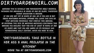 Schmutzige Gärtnermädchen nimmt Flasche in den Arsch & Analprolaps in der Küche