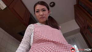 Housewife Kyoka Makimura is in the kitchen when her lover fingers her