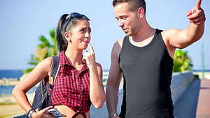 Rumänische Schlampe Julia De Lucia wird im Ausland mit Sperma überzogen