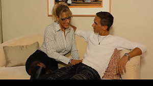 Geile reife Hausfrau fickt und lutscht den besten Freund ihres Sohnes