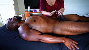 Brianna, die rote MILF, lässt sich von einem schlüpfrigen Masseur verwöhnen