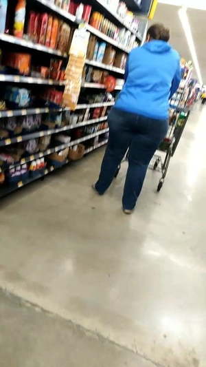 Wide pawg in jeans adjusting und thick Schoko Omi