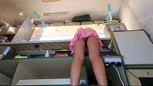 Ich konnte nicht widerstehen, dieser heißen Schlampe beim Arbeiten unter den Rock zu gucken!
