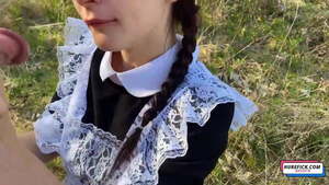 sexwillige Studentin Schulmädchen Studentin blasen und flachgelegt in draussen
