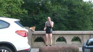 Plastikschlampe in plastic hotpants im Freien in Hamburg 01
