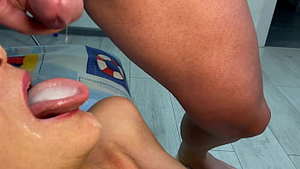 Mundvoll Sperma: Große Sahnespritze verschlucken