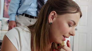 Deutsch business blondierte model fickte einem groß Schwanz clothed