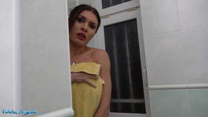 Öffentlichkeit Agent rothaar Britisch zeigt ihrer gepiercte Titten Before Basement Fick Besamung