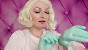 ASMR: Zwei Schichten bunte Nitrile-Handschuhe - Arya Grander reißt sie auf und fickt sich wild!