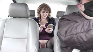 Fahrer fickt blonde Milf ohne Schlüpfer im Taxi